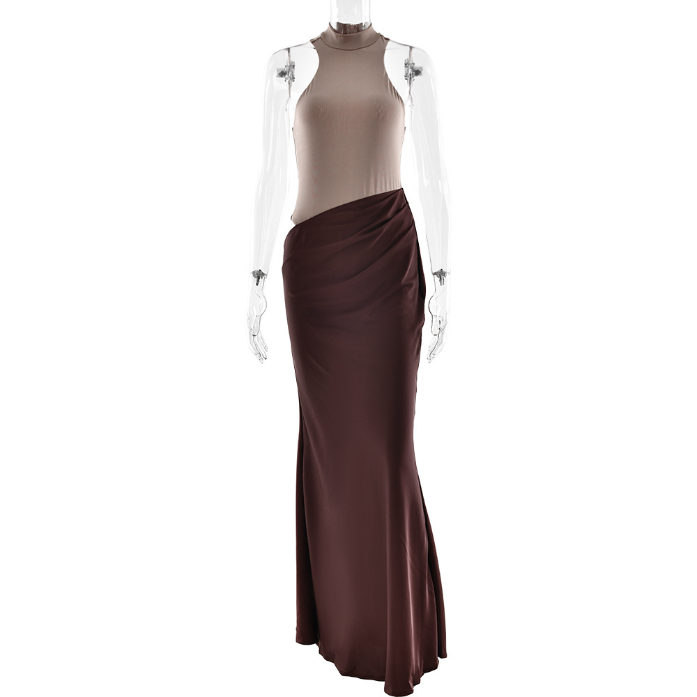 Two Tone Sleeveless Satin Dress